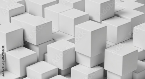 Abstract White cubes stacked in varying heights