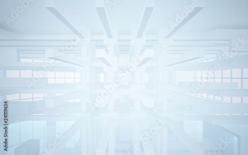 Abstract white interior highlights future. Architectural background. 3D illustration and rendering