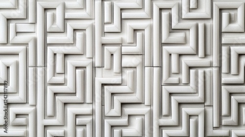 Abstract White Maze Tile Wall Design