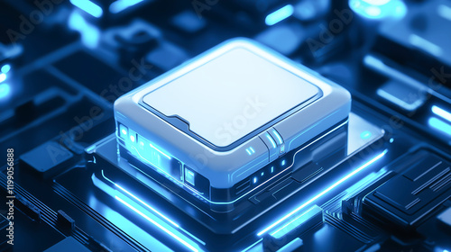 Abstract white modern computer architecture composition with light, Information technology and artificial intelligence concept