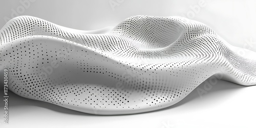 Abstract white sculptural bench, wavy design, perforated surface, modern architecture background.