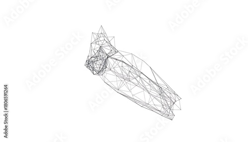 Abstract Wireframe Network Form with Sharp Edges on White Background Keywords: abstract, wireframe, network, form, sharp, edges, lines, dots