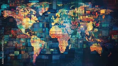 Abstract World Map with Colorful Pixelated Pattern