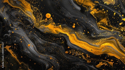 Abstract Yellow and Black Fluid Art Background