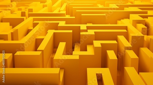 Abstract Yellow Maze With Geometric Patterns and Shadows, Creating a Complex and Intriguing Visual Effect. Generative AI