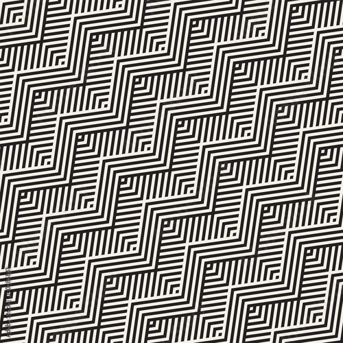 Abstract ZigZag Parallel Stripes. Vector Seamless Pattern. Repeating Monochrome Background