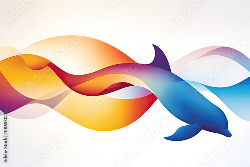 Abstrakte Wasserfarben-Illustration von einem Delphin aus geometrischen fließenden Formen - Farbenfrohes Motiv für die Wohnung