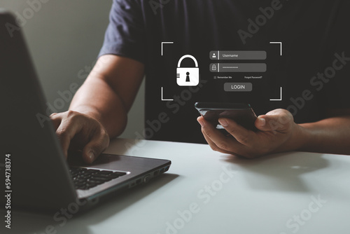 Account Access app to sign in securely or receive verification codes by email or text message. Login, User, cyber security in two-step verification, identification information security and encryption.