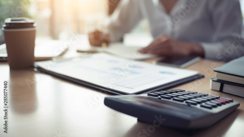 Accountant working with data documents calculating on business report, Selective focus.