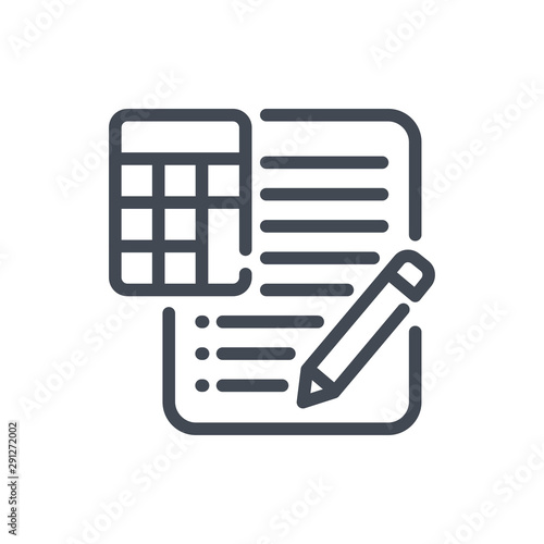 Accounting report line icon. Document with pen and calculator vector outline sign.
