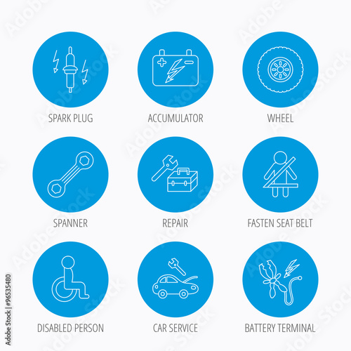 Accumulator, spanner tool and car service icons.