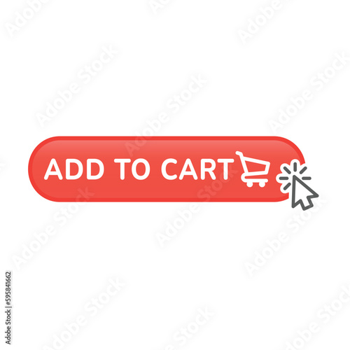 Add to cart button with shopping cart. Vector 3d icon with cursor pointer arrow.