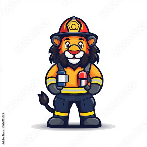 Adorable Cartoon Lion as Firefighter Ready to Assist