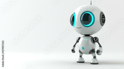 Adorable Robotic Companion: A charming and friendly robot with a sleek, modern design stands confidently, its expressive, glowing eyes conveying warmth and approachability.
