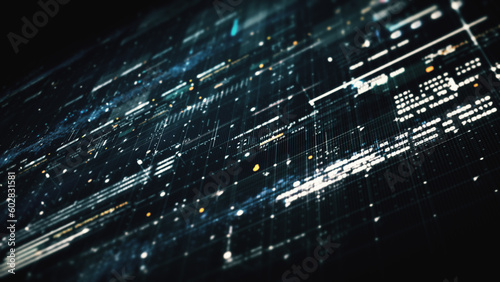 Advance data matrix, telemetry and encrypt numbers simulation user interface display in cyber space abstract de-focus environment background