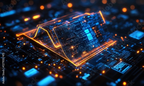Advanced AI Document Management for Regulatory Compliance and Governance, Digital Interface, Technology Integration, Secure Data Processing, Nighttime