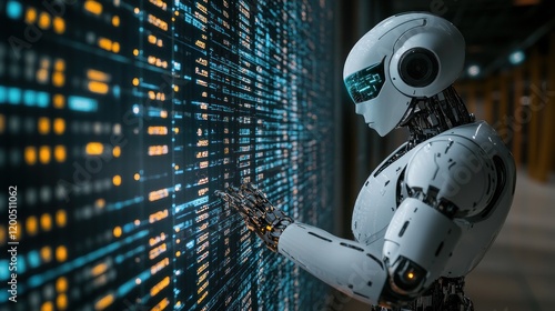 Advanced AI: Futuristic Robot Interacting with Digital Data Streams
