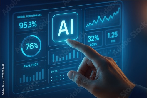 Advanced Artificial Intelligence Dashboard with Performance Metrics and Data Analytics Display
