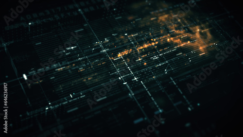 Advanced data matrix simulation UI with cutting-edge digital environment with a dynamic and immersive display of interconnected data matrix information networks systems background