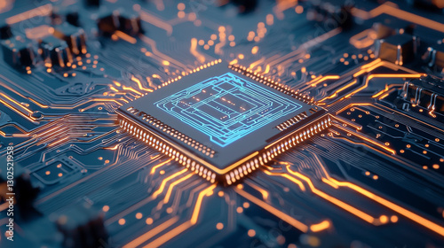 Advanced microchip technology with illuminated circuits, showcasing intricate design and high-performance computing solutions for modern electronic devices.