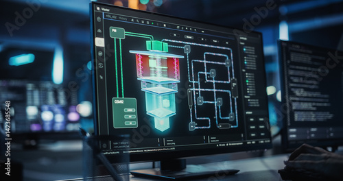 Advanced Quantum Computing Data on Computer Screen. Close Up on Computer Display of an Engineer Developing Solutions for a Quantum Computer Hardware
