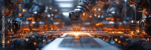 Advanced robotic arms working in a high-tech manufacturing environment, assembling circuits with precision and automation.