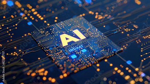 Advanced Technology Concept Visualization: Circuit Board Processor Microchip Starting Artificial Intelligence Digitalization of Neural Networking and Cloud Computing. High quality AI generated image