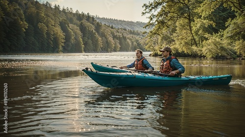 Adventure Kayaking in Scenic Forested River Landscape