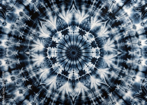 Aerial Black & White Tie-Dye Geometric Pattern - Abstract Texture Background