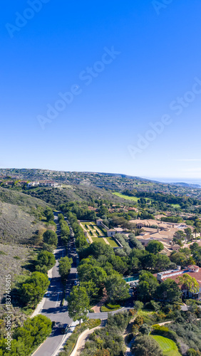 Aerial shot of luxury homes at the Pelican Hill Resort in Newport Beach California USA