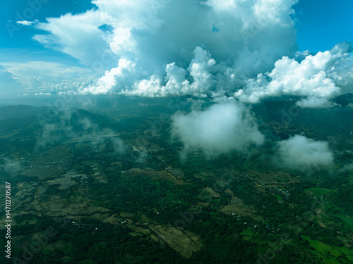 Aerial Shot of Tropical Forest with Rolling Clouds