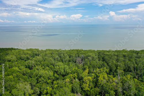 Aerial view of wild Borneo Rainforest or Rain Forest.