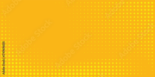 Aesthetic Yellow halftone pattern. Retro comic gradient background. Bright orange pixelated dotted texture overlay. dots vector ilustration.Eps 10