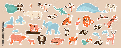 African animals and tigers cute stickers set