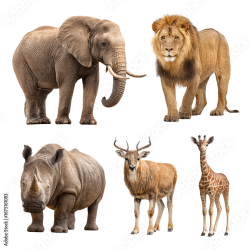 African animals in a grid layout