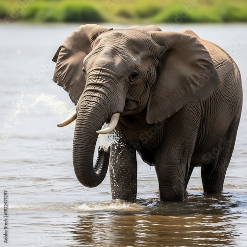 African Elephant Standing in Water Body.