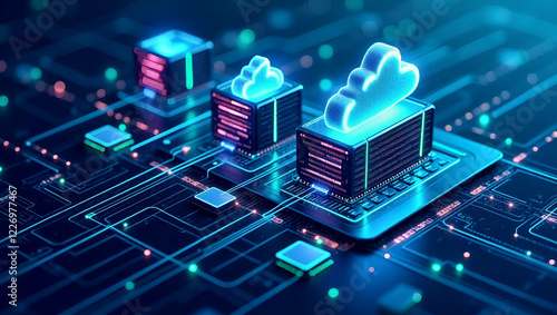 情報管理とアーカイブ戦略を象徴する未来的なデジタルテクノロジー背景.生成AI