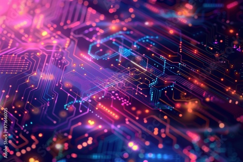 AI algorithm abstract background with digital patterns, circuits, and codes.