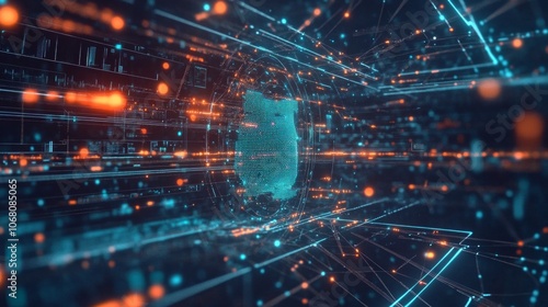 AI algorithm detecting patterns in big data visualized on a holographic screen.