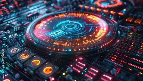 AI algorithm learning from data, holographic charts, futuristic interface, vibrant colors, high resolution, advanced technology,