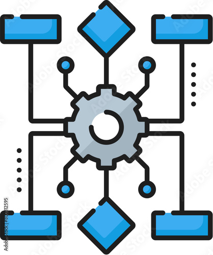 AI algorithm, machine learning, artificial intelligence technology line color icon. Artificial intelligence computer science, robotic smart algorithm future technology thin line vector pictogram