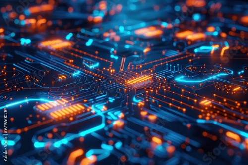 AI algorithms abstract background with neural networks, circuits, and data flow.
