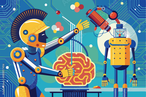 AI and Machine Learning: Robot Arm Installing Artificial Intelligence Chip into Human Brain for Enhanced Cognition