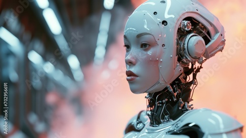 ai artificial intelligence asian woman robot portrait. concept robots, androids, Asia, China