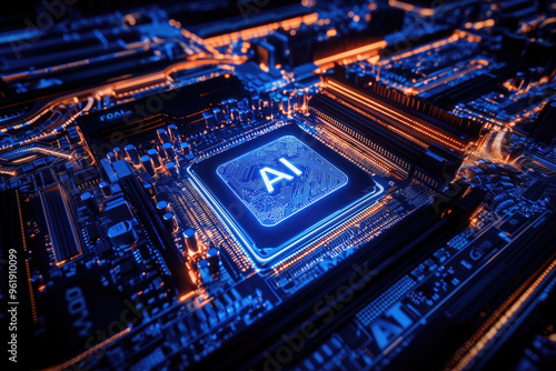 AI Artificial Intelligence chipset on circuit board in high tech concept