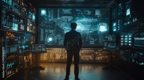 AI big data analysis with intelligent algorithm optimization, predicting market trends for future innovations.