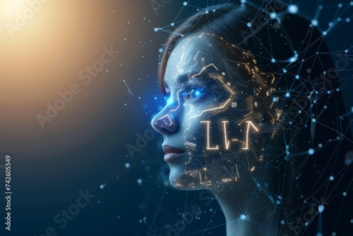 AI Brain Chip encryption. Artificial Intelligence plasticity human it budgeting mind circuit board. Neuronal network brain computer interface deep learning smart computer processor multiple data