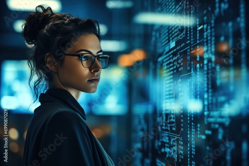 ai, business, engineer, network, technology, innovation, professional, artificial intelligence, developer, development. close up to software engineer, look at binary HUD for find some error to fix it.
