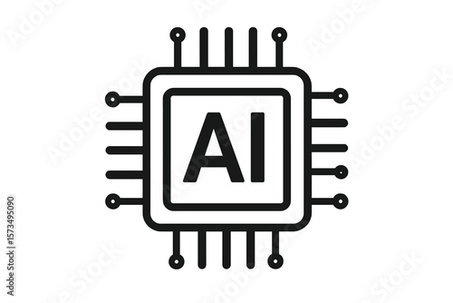 AI Chip Icon, Artificial Intelligence Processor, Microchip Circuit, Technology Symbol, Machine Learning, Neural Network, Digital Brain, Data Processing, Vector Illustration
