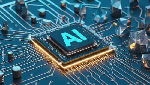 AI Chip in the Digital Realm: A close-up shot of an AI chip illuminates the intersection of technology, innovation, and intelligence, signifying the essence of advanced computing.